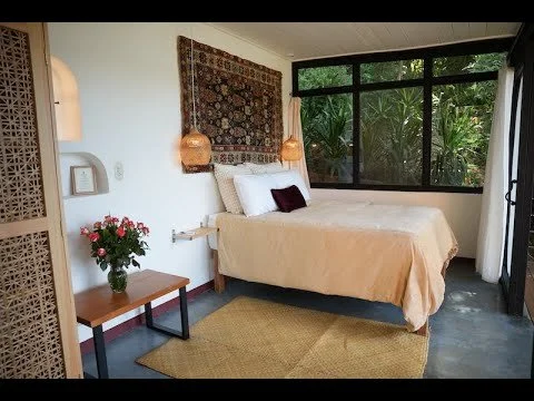 Our Jaguar Bungalow is perched on the hillside, behind the Lotus House building, overlooking the roof of the Tiger Temple studio. This cozy bungalow is perfect for individuals or couples looking for the bungalow experience without a hillside climb.